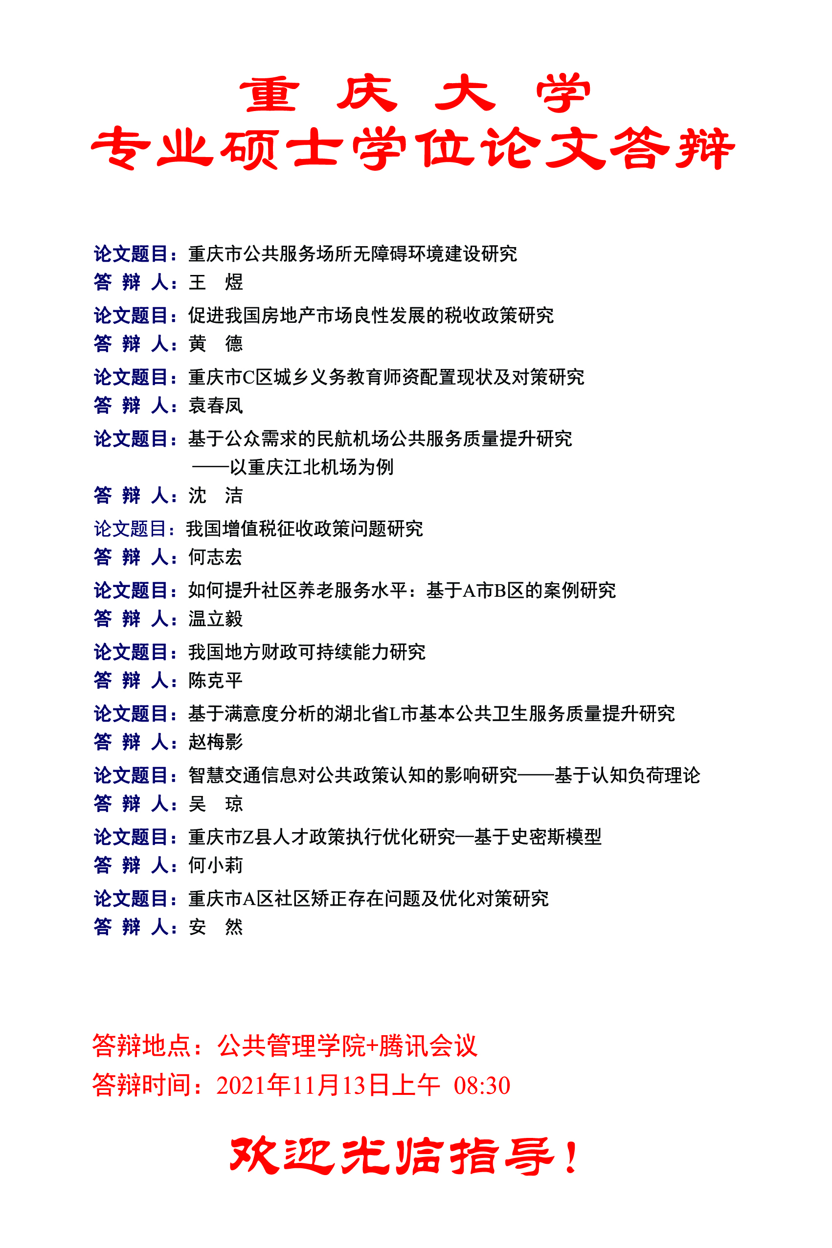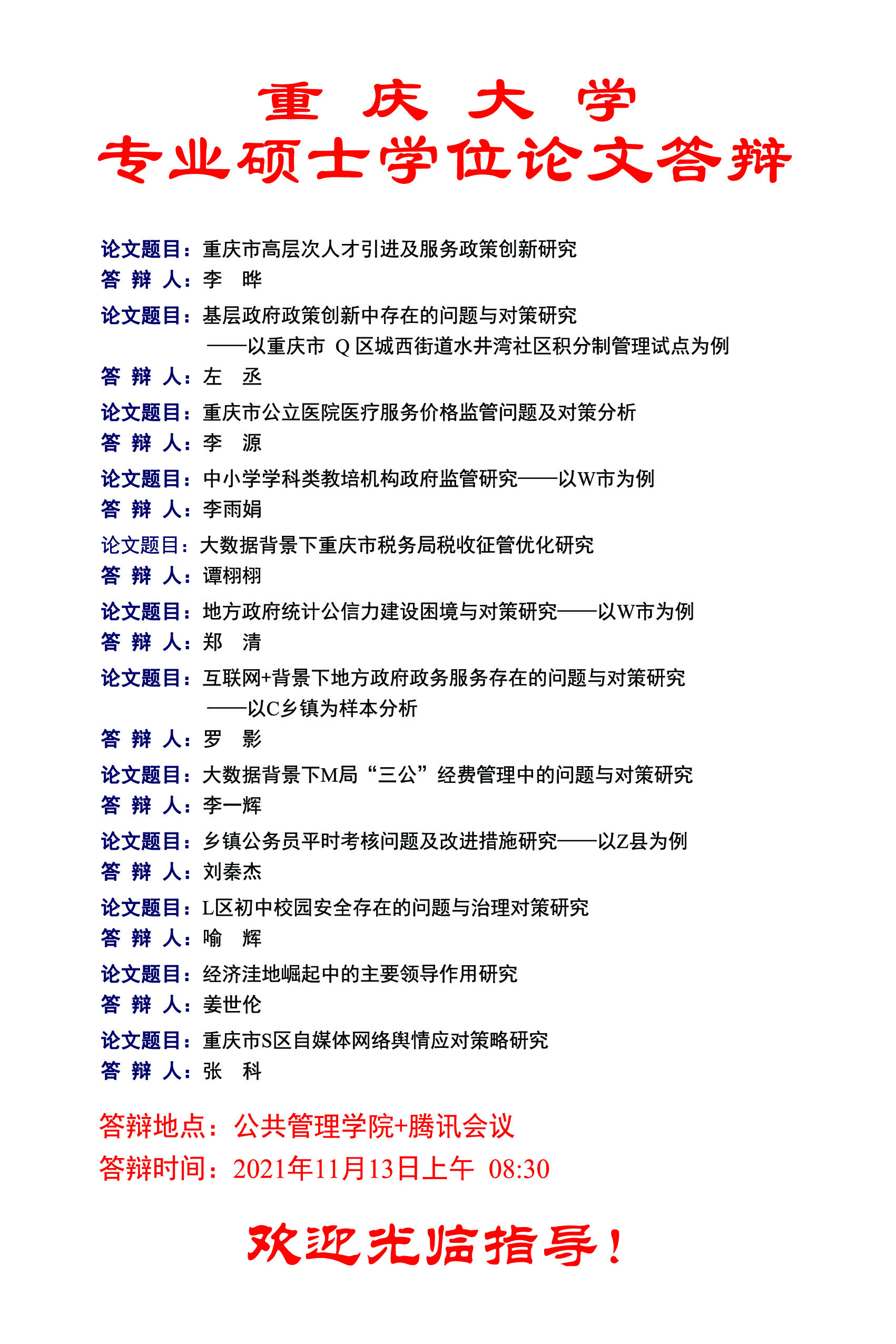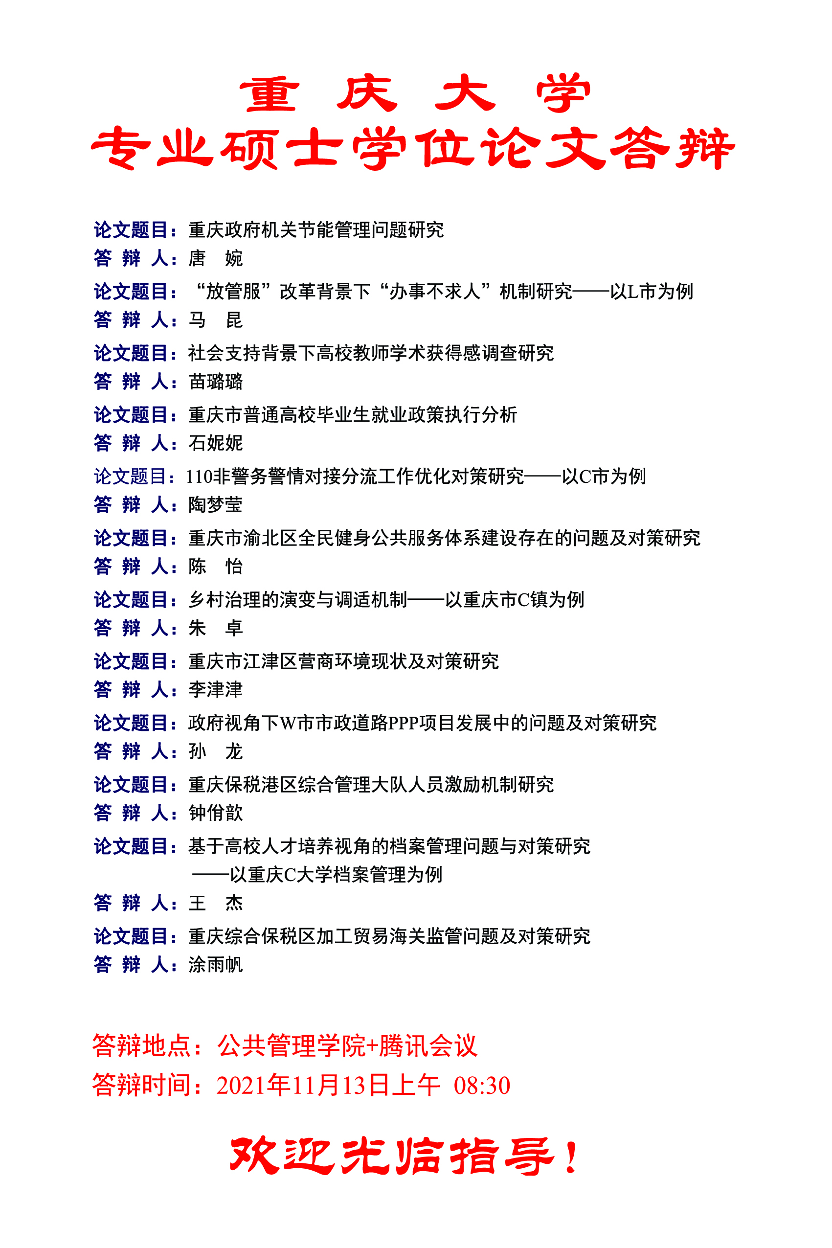 在线色情 2021年秋季MPA学位论文答辩公告