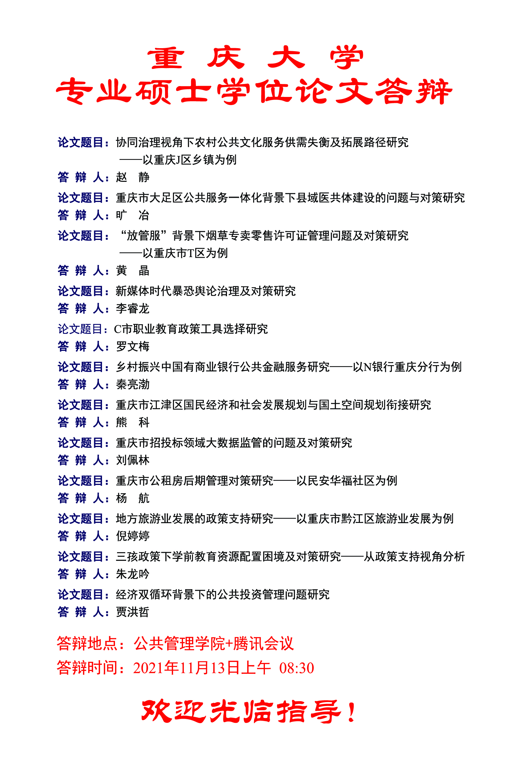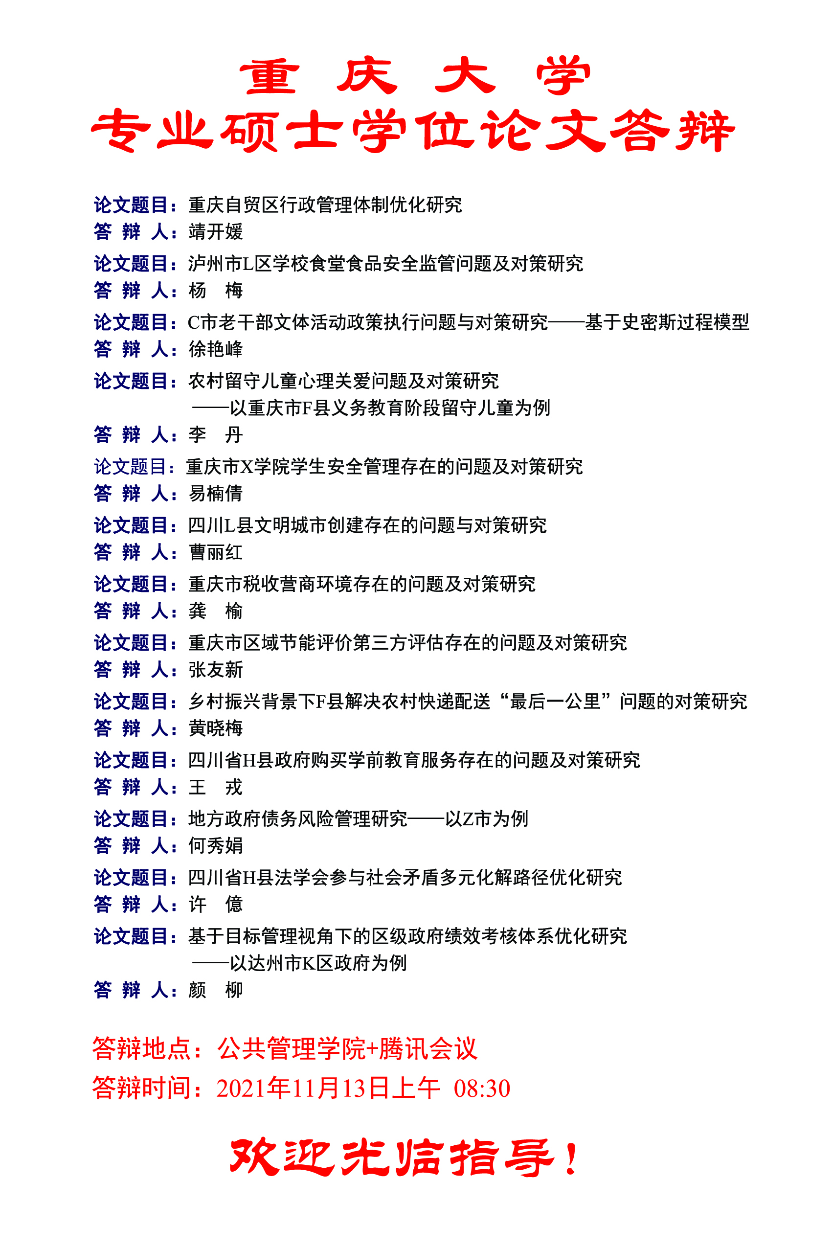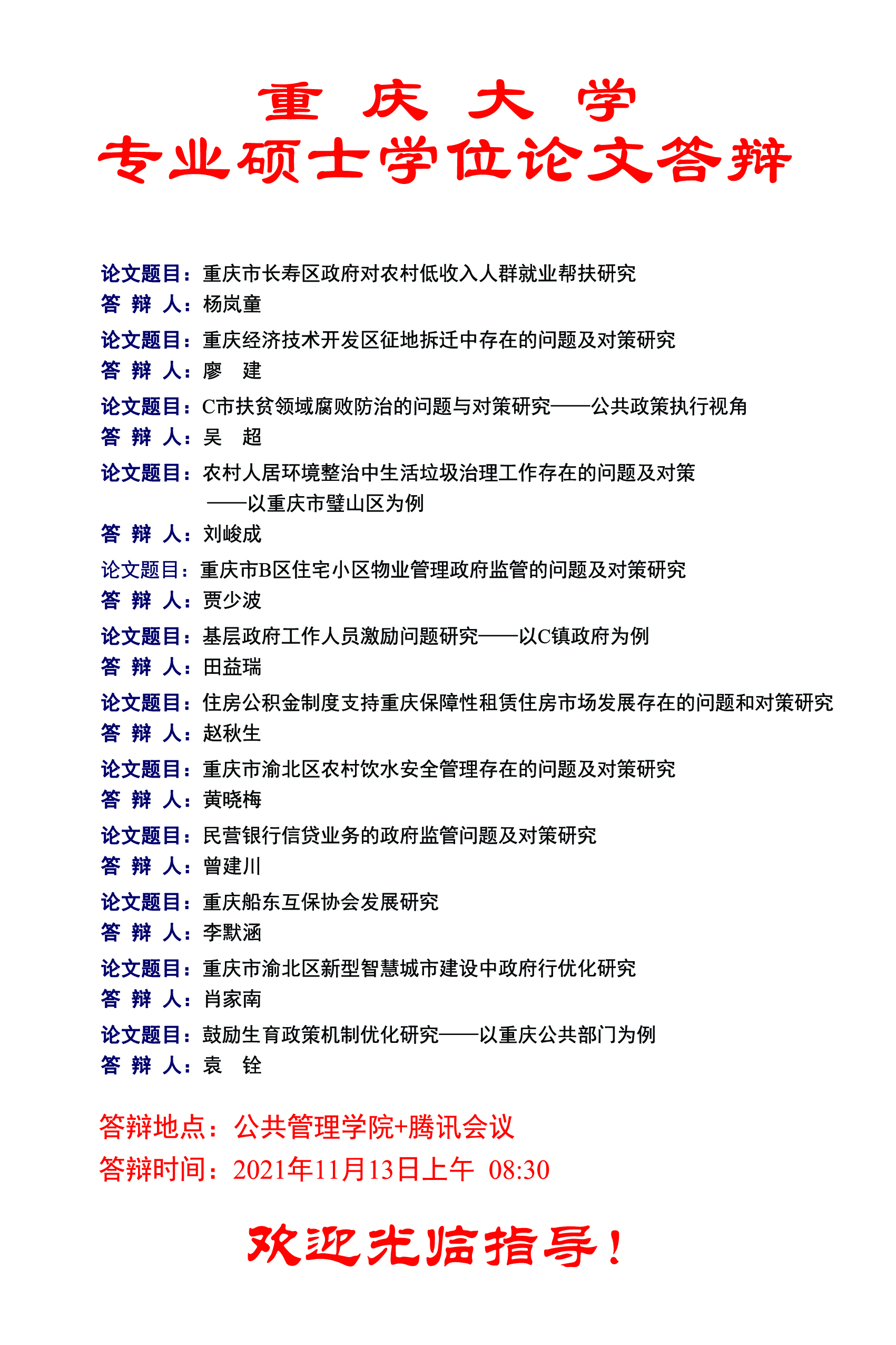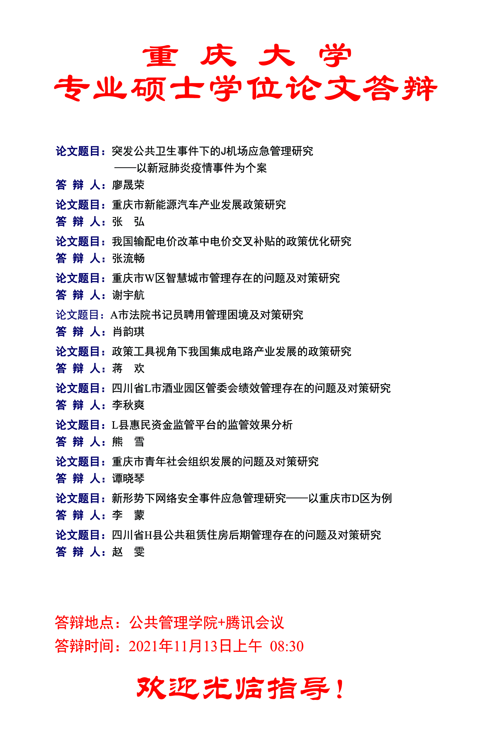 在线色情 2021年秋季MPA学位论文答辩公告