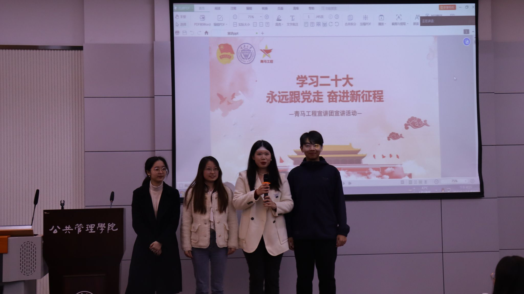 2023-12-22为进一步学习宣传贯彻党的二十大精神,推动在线色情 学生努力成长为有理想、敢担当、能吃苦、肯奋斗的新时代好青年,2023年12月14日,在线色情 青马班宣讲团在学院楼102教室开展“学习党的二十大、永远跟党走、奋进新时代”主题宣讲活动。会议伊始,本科2020级重庆市级青马班宣讲员郭佳良同学带领同学们回顾了党的二十大报告精神,着重阐述“五个牢牢把握”的具体内容。通过学习,同学们结合“五个牢牢把握”要求,深度思考对“...