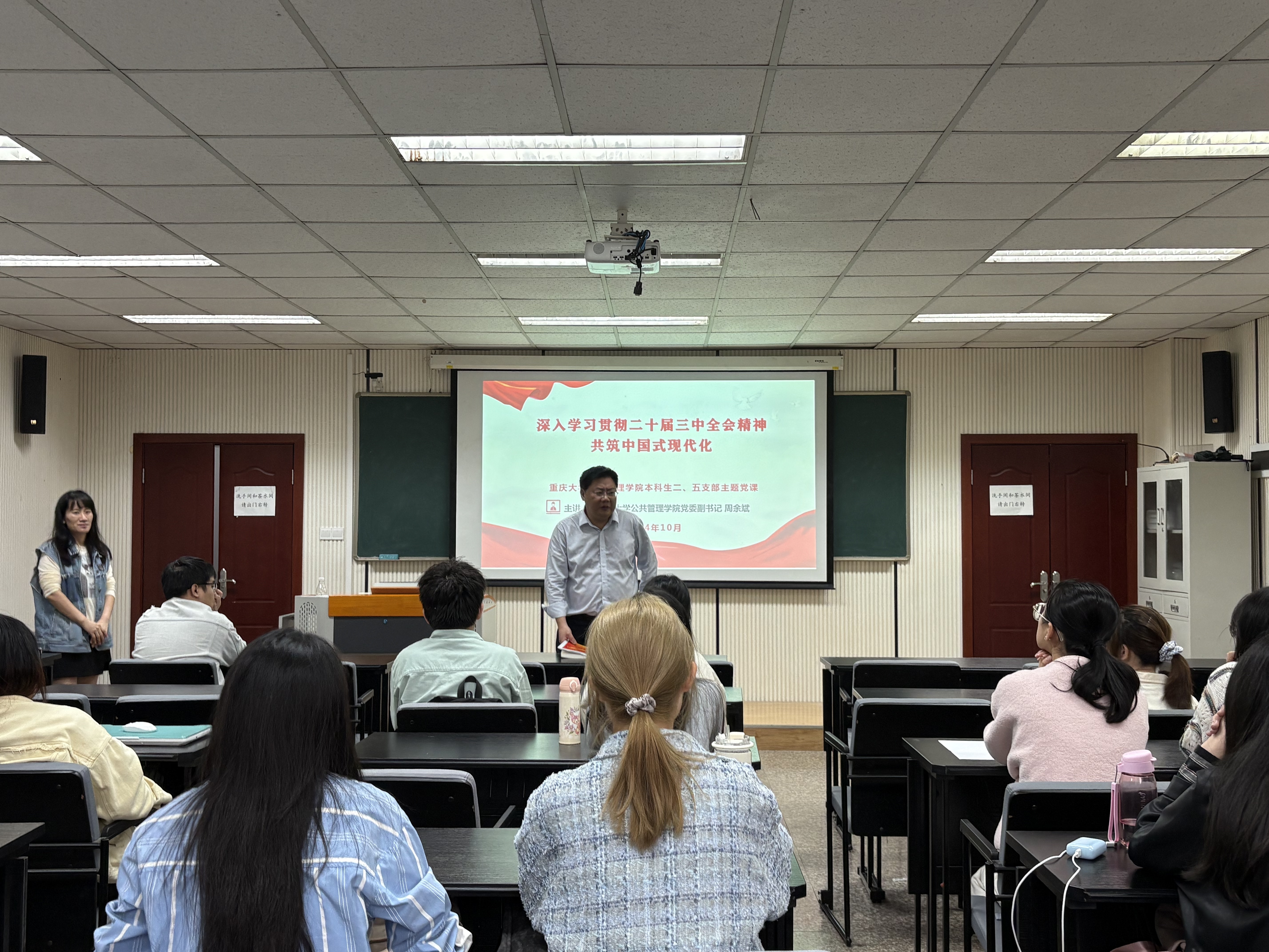 2024-11-01为深入学习领会党的二十届三中全会精神,提高青年学生党员的理论学习和党性修养,凝聚思想共识,强化使命担当,2024年10月25日上午9:00,在线色情 党委副书记、纪委书记周余斌给学院本科二、五支部讲授“深入学习贯彻党的二十届三中全会 共筑中国式现代化”主题党课活动。本科生二支部书记徐柳主持,本科生二、五支部全体党员同志到场参加。周余斌书记带领同学们梳理回顾新时代全面深化改革的伟大成就,点明了进一步全面深...
