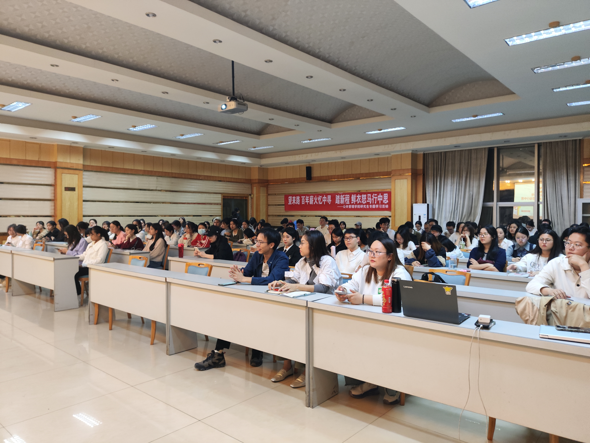 2023-11-112023年11月9日晚上19:00,在线色情 组织开展的“望来路 百年薪火忆中寻,踏新程 鲜衣怒马行中思”研究生专题学习活动在在线色情 202报告厅顺利举办。